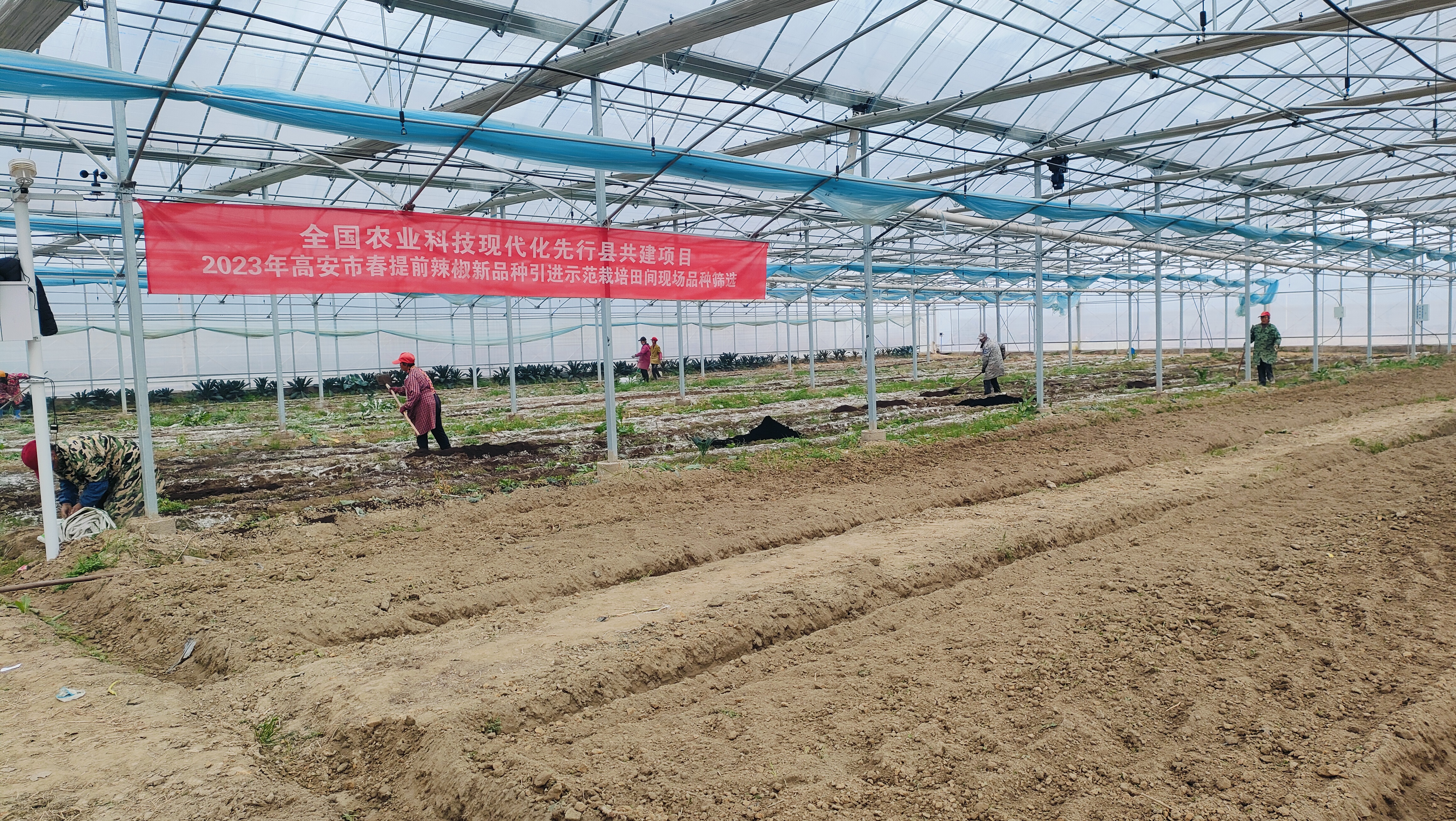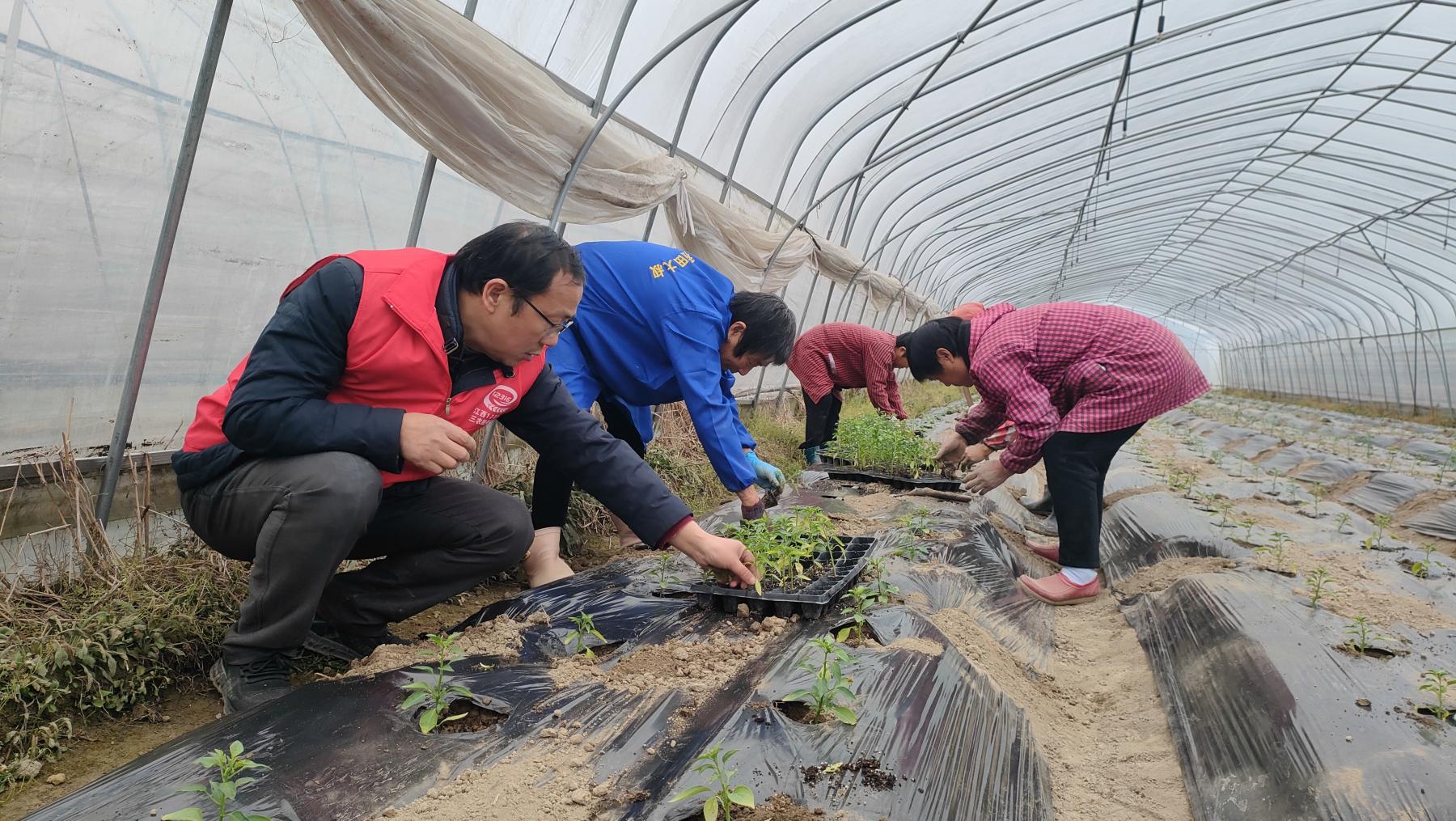 江西12316经作专家黄国东现场指导高安市上湖乡辣椒种植户开展春提前辣椒移栽技术工作。